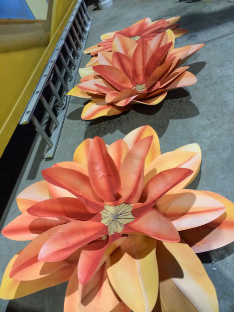Float props and decor for Krewe of Pygmalion's 2015 Mardi Gras parade "The Spectrum of Emotions" - foam, paper, and wood sculpture and painting