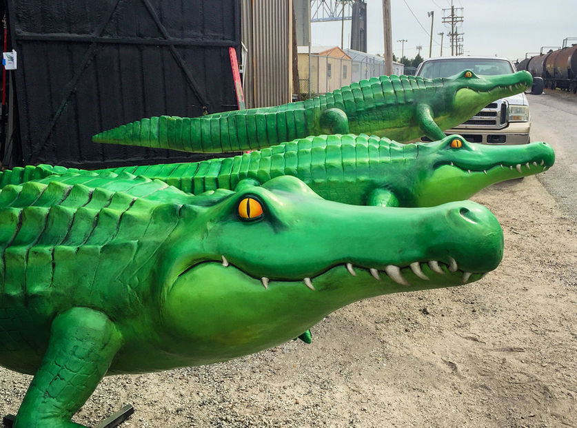 Set of nine 12' fiberglass alligators created for "Cajun Santa" display in Houma, LA